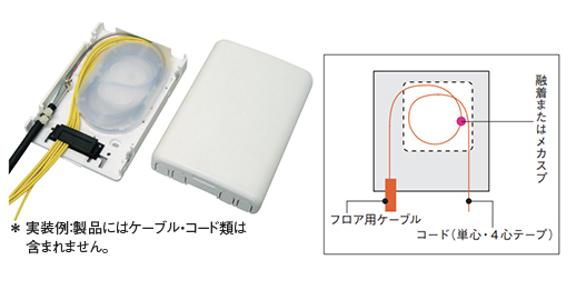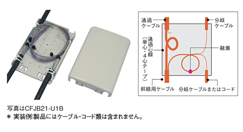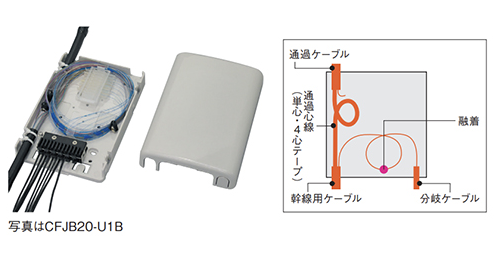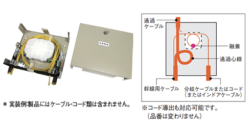 - 幹線用ケーブルの通過心線を収納し、各戸に引き込むドロップケーブルを分岐することができます。