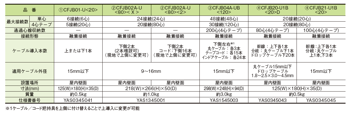 - 少心数の光コード導出タイプで、単心コード、テープコードのいずれも導出可能です。