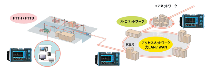- FTTHからメトロ、コアまで幅広い測定要求に応えます。