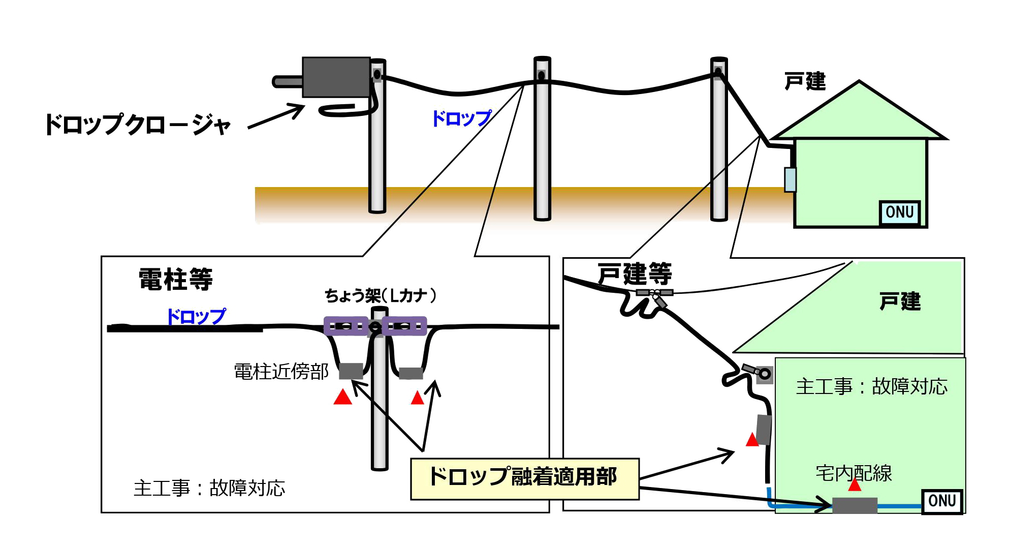 ドロップ融着 ※単心~2心のドロップ融着が可能