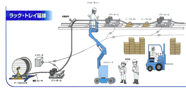 埋設、管路延線などに最適です。ピットの広さに余裕がある時、光ケーブルなどの細いケーブルから太いケーブルまで対応します。