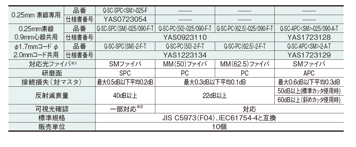 ※コード用クイックSCはコード外被処理工具[シーススリッター]が別途必要です。