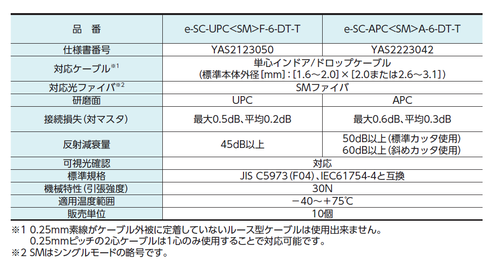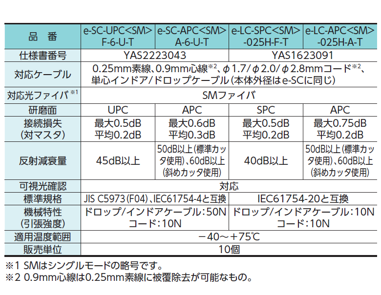 • e-SCコネクタ  角型ドロップ/インドアケーブル用
