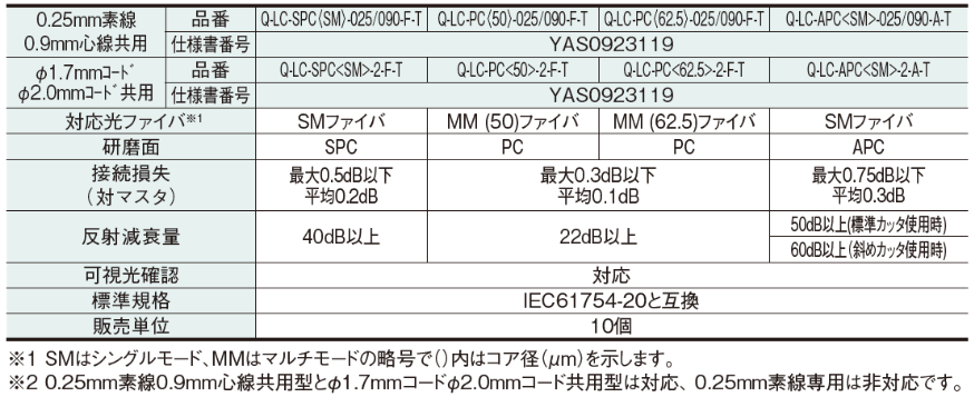 • 0.25mm素線、0.9mm心線、Φ1.7mm/Φ2.0mmコード、インドア/ドロップケーブルに適用可能です。