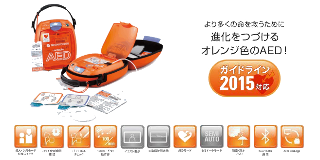 - 日本光電の技術を結集した国内開発、製造のAEDです。