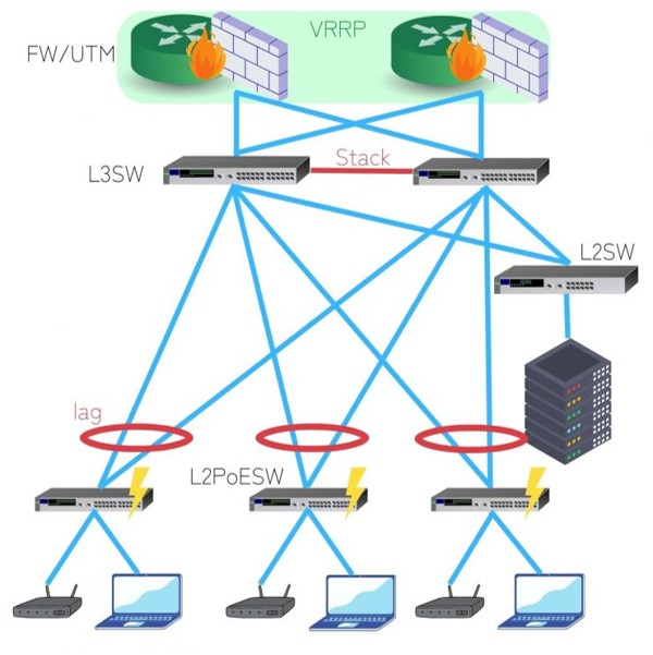 FW/UTMが同一型式ではないため、VRRPで冗長化。