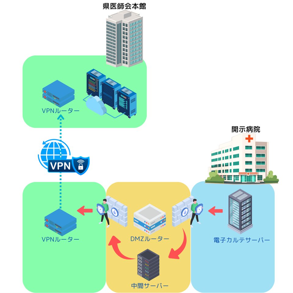 - 地域医療連携の為に、各医療施設から県医師会センターへVPN網を張りたい